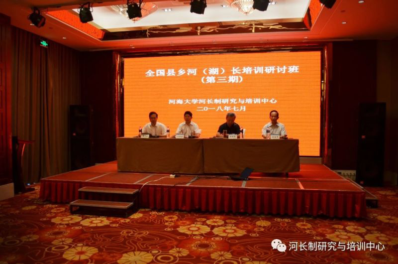 2018年7月17日至19日,河海大学河(湖)长制研究与培训中心在浙江绍兴举办了第三期全国县乡河(湖)长专题培训研讨班,共有来自北京、安徽、广东、河南、湖北、山东、浙江、江苏等省150余名学员参加。水利部建管司原司长、中国水利工程协会会长孙继昌教高,水利部大坝安全管理中心主任、水利部南京水利科学研究院副院长孙金华教高,绍兴市河长办常务副主任、绍兴市人民政府方林苗副秘书长受邀莅临本次培训研讨班开班仪式。研讨班由河海大学河长制研究与培训中心常务副主任鞠茂森研究员主持。 为了让各位河(湖)长学习先进经验