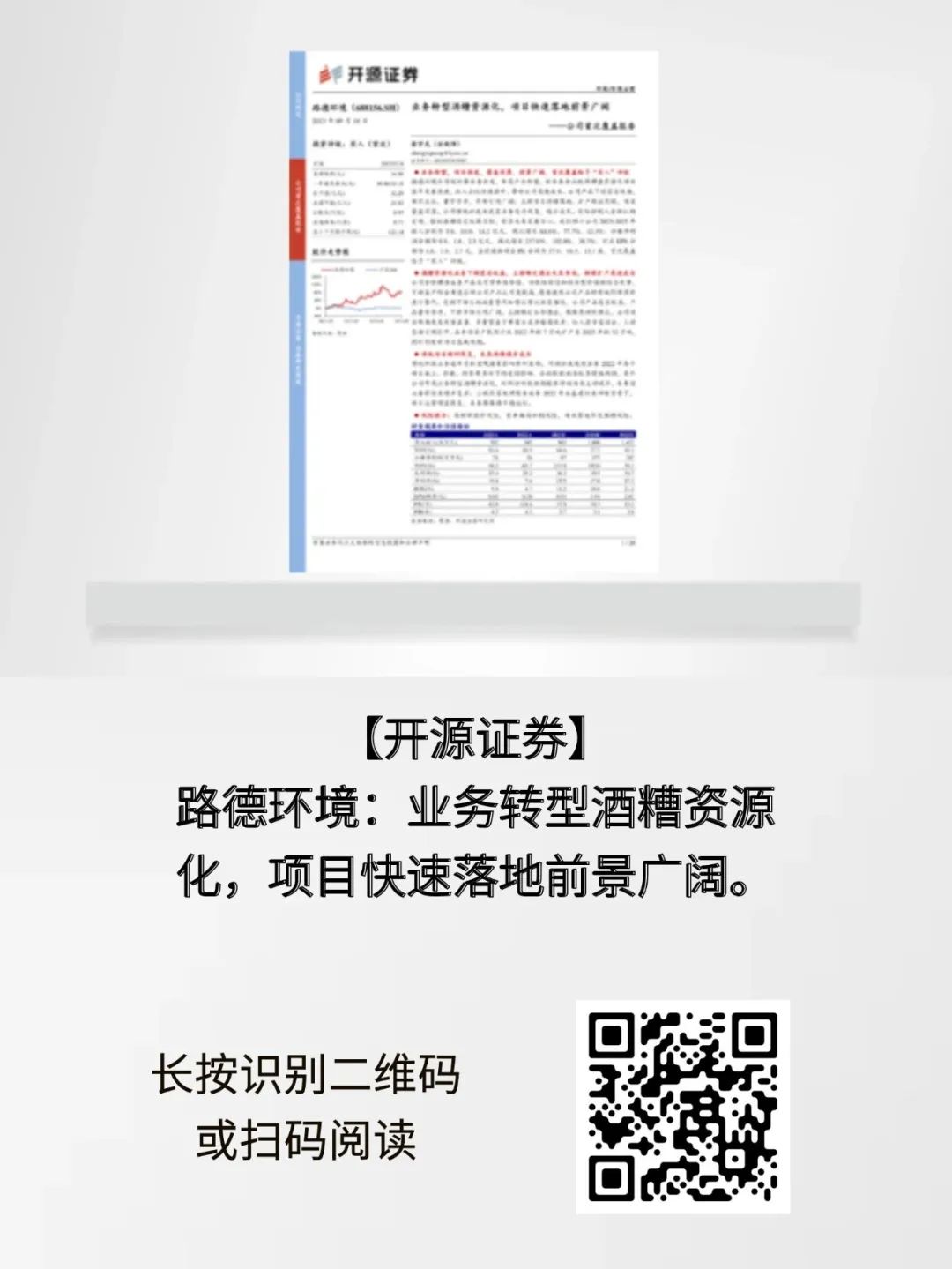 2023年5月18日,开源证券发布了以《路德环境:业务转型酒糟资源化,项目快速落地前景广阔》为主题的深度证券研究报告,首次覆盖路德环境(股票代码:688156),给出了“买入”评级。