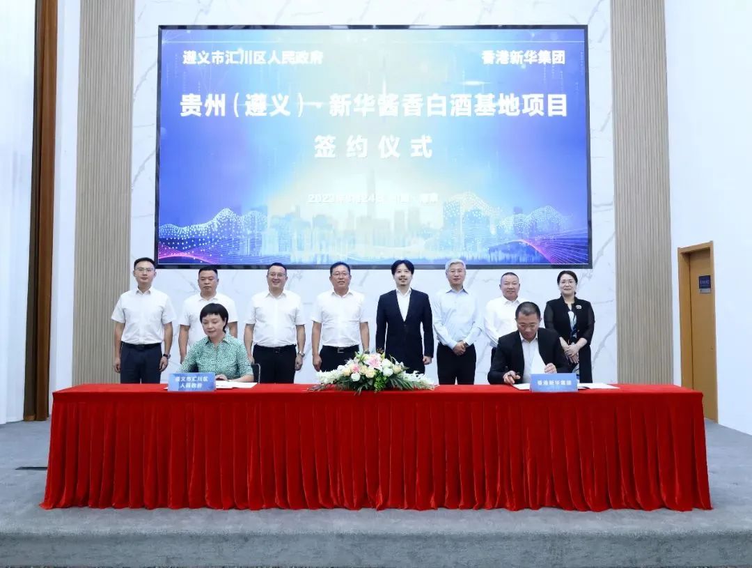 8月24日上午,汇川区与香港新华集团内地下属绝对控股企业广东新华峰汇商业管理有限公司就贵州(遵义)•新华酱香白酒基地项目在江苏南京成功签约。